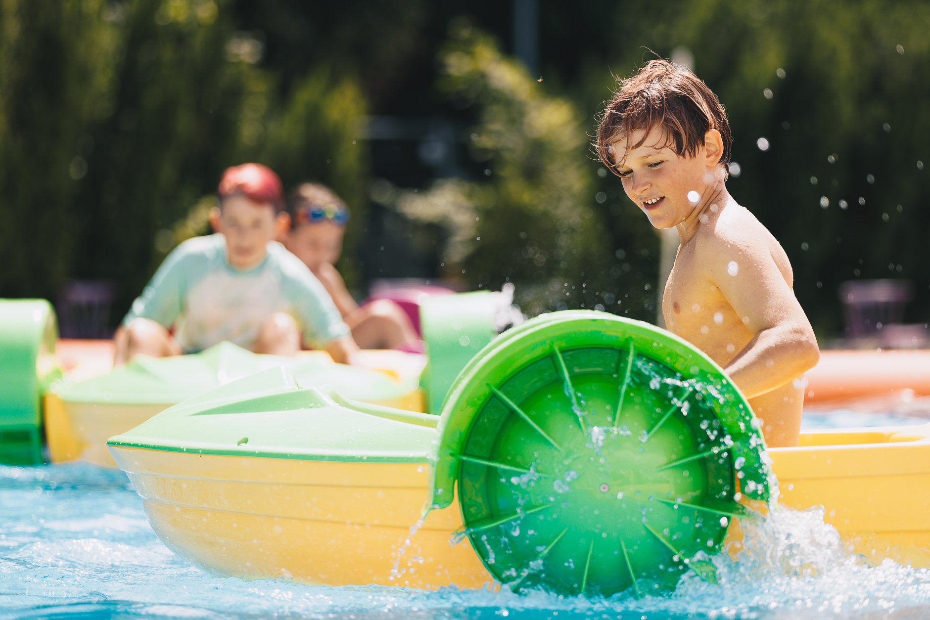 Dla najmłodszych przygotowaliśmy interaktywny plac zabaw, a w sezonie letnim rozkładamy duży basen.